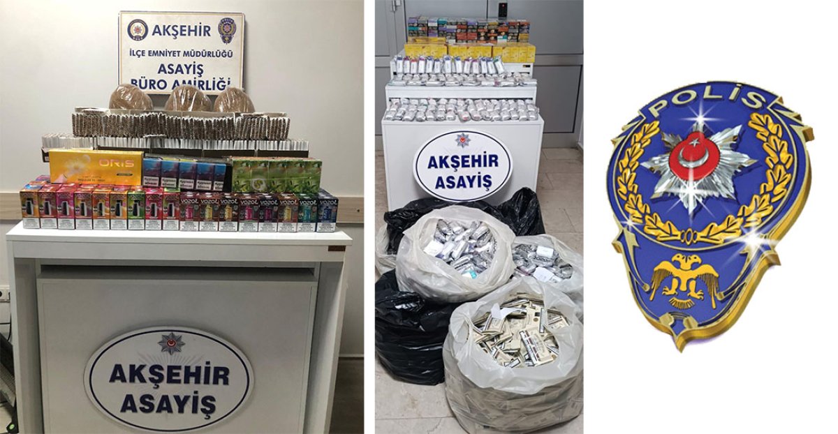 Akşehir İlçe Emniyet Müdürlüğü Asayiş Büro Amirliği ekipleri, gerçekleştirdiği iki ayrı operasyonla kaçakçılığa büyük darbe vurdu. Yapılan çalışmalarda 1.600 adet elektronik sigara, 1.600 adet elektronik sigara kiti, 10 bin adet tek dal sigara, 500 paket gümrük kaçağı sigara, 15 kilogram kıyılmış kaçak tütün ve 300 adet pipo tütünü ele geçirildi.