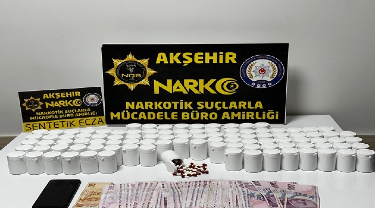 Edinilen bilgilere göre, ekipler şüpheli S.K.’yi takibe alarak yakaladı. Şüphelinin üzerinde ve valizinde yapılan aramada, valiz içerisinde 100 kutu halinde toplam 5 bin 500 uyuşturucu hap ile 13 bin TL nakit para bulundu. Ele geçirilen uyuşturucu maddelere ve paraya el konuldu. Gözaltına alınan S.K. hakkında “ uyuşturucu madde bulundurmak, kullanmak ve uyuşturucu madde ticareti yapmak” suçlarından işlem yapıldı. Emniyetteki işlemlerinin ardından adliyeye sevk edilen şüpheli, savcılık sorgusunun ardından tutuklanma talebiyle mahkemeye çıkarıldı. Mahkemece tutuklanan S.K., Akşehir Cezaevi’ne gönderildi
