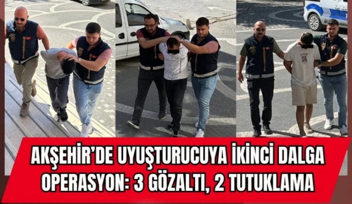 Akşehir İlçe Emniyet Müdürlüğü Narkotik Suçlarla Mücadele Büro Amirliği ekipleri, ilçede uyuşturucu ticaretine yönelik yürüttüğü çalışmalar kapsamında ikinci dalga operasyonu gerçekleştirdi. Operasyonda A.T., M.A. ve M.K. isimli üç şüpheli gözaltına alındı.