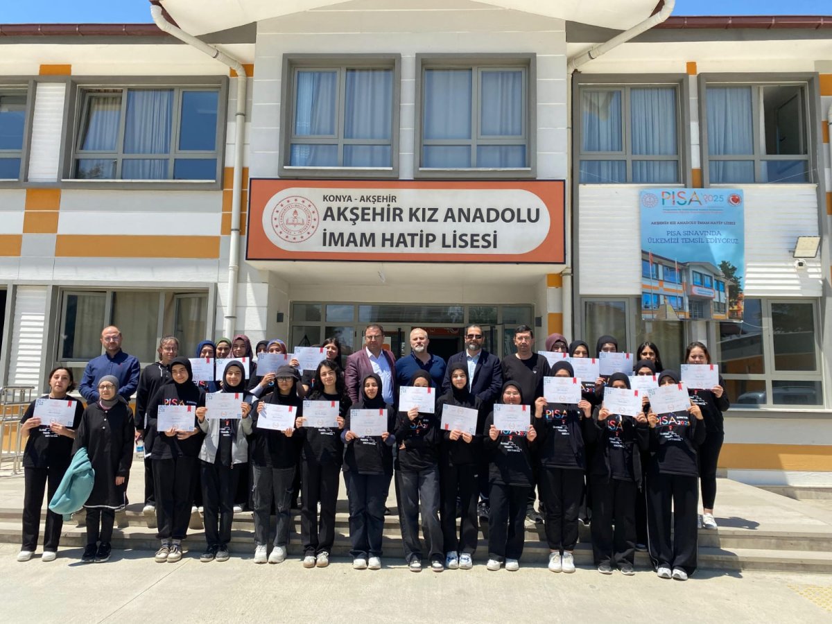 Akşehir Kız Anadolu İmam Hatip Lisesi Türkiye genelinde Pisa 2025 uygulamasına katılan 204 okuldan biri olarak bugün sınavı verdi  Konya'dan seçilen 6 okuldan biri olan Kız İmam Hatip Lisesi uluslararası öğrenci değerlendirme programında güzel bir başarı elde etti. Akşehir İlçe Milli Eğitim Müdürü Barbaros Topaloğlu, İlçe Milli Eğitim Şube Müdürü İbrahim Gülcü, Bakanlık ve Konya İl Milli Eğitim Müdürlüğü yetkililerinin gözetiminde elektronik ortamda yapılan sınav sonrasında öğrencilere katılım sertifikası verdi.