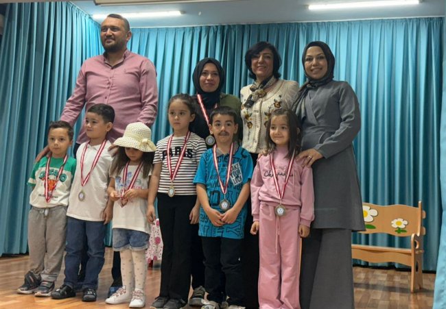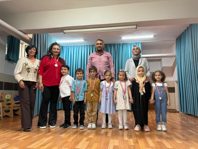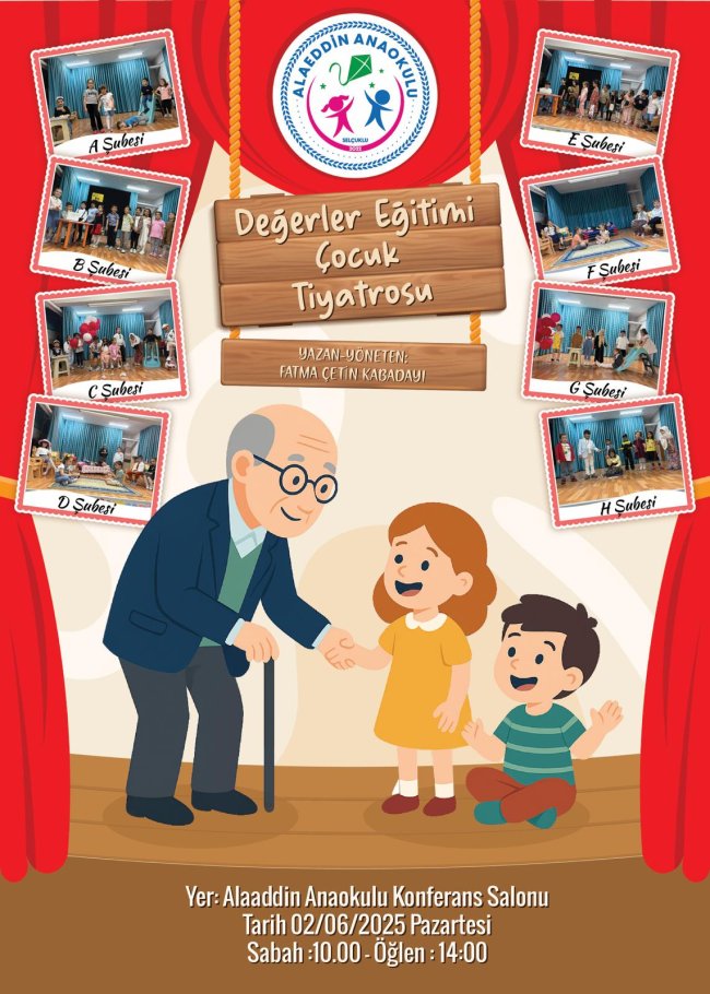 Alaeddin Anaokulu Müdürü Harun Reşit BAŞKAYA "2024-2025 Eğitim Öğretim Yılı 1. Döneminde de de gerçekleştirdiğimiz “Çocuklar Sahnede” isimli projemiz çocuklarımıza her açıdan fayda sağlamıştır. Bu açıdan başta Müdür Yardımcımız Fatma ÇETİN KABADAYI olmak üzere, öğretmenlerimize, velilerimize ve minik sanatçılarımıza teşekkür ediyorum. Bu proje, çocuklarımıza tiyatroyu sevdirmenin yanı sıra, kendilerine güvenmeleri, toplum önünde kendini ifade etmeleri ve önemli değerlerimizi yaşayarak öğrenmeleri açısından çok faydalı olmuştur. Bütün oyuncularımızı tebrik ediyorum," dedi. Günün anısına minik sanatçılara madalya takdimi yapılarak hatıra fotoğrafı çekildi.