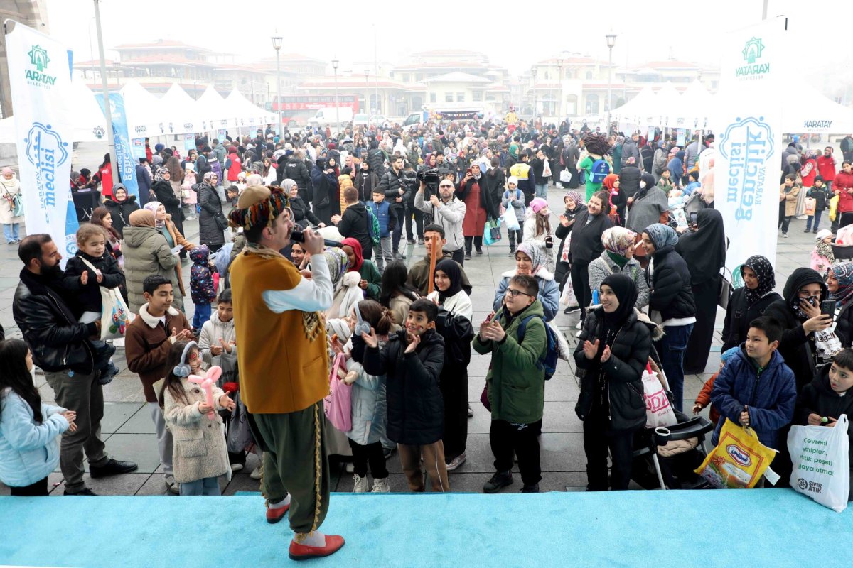 Karatay Belediyesi tarafından sabahın erken saatlerinden itibaren belediye hizmet binası önü ve Mevlana Meydanı başta olmak üzere ilçenin farklı noktalarında etkinlikler gerçekleştirildi. Mevlana Meydanı’nda kurulan sahnede meddah, jonglör, tahta bacak ve illüzyon gösterileri ile çeşitli yarışmalar düzenlenirken; kurulan çadırlarda rozet, ayraç, Filistin temalı bileklik, yüz boyama ve sosis balon atölyeleri çocuklarla buluştu.
