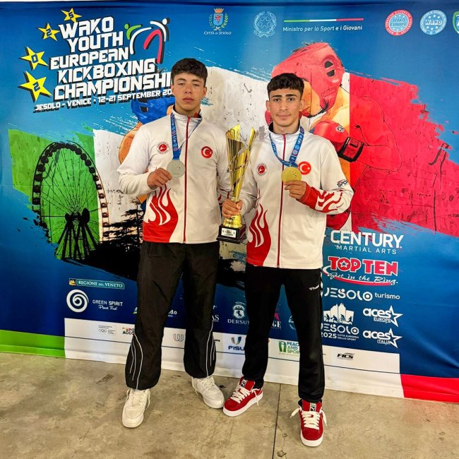 Meram Belediyespor’un milli sporcuları, İtalya’nın Jesolo kentinde 12-21 Eylül tarihleri arasında düzenlenen WAKO Avrupa Gençler Kick Boks Şampiyonası’nda büyük bir başarıya daha imza attı. Emircan Abdullah Beserek, birbirinden zorlu mücadeleler sonunda Avrupa Şampiyonu olurken, Kazım Mert Dereli ise Avrupa ikinciliğini elde etti.