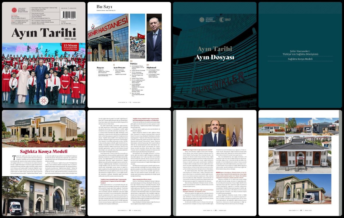 Cumhurbaşkanlığı İletişim Başkanlığının zengin içerikli ve süreli yayını olan 'Ayın Tarihi' dergisinin on sekizinci sayısı yayımlandı. Derginin 'Ayın Dosyası' bölümünde, sağlıkta dönüşüm süreciyle birlikte hizmete giren şehir hastaneleri, modern teknolojiyle donatılan ve insan odaklı yaklaşımla hizmet veren sağlık merkezlerinin kuruluş süreci, yapısal özellikleri ve sundukları hizmetler kapsamlı bir şekilde incelenirken, 'Sağlıkta Konya Modeli' projesi de örnek gösterildi.