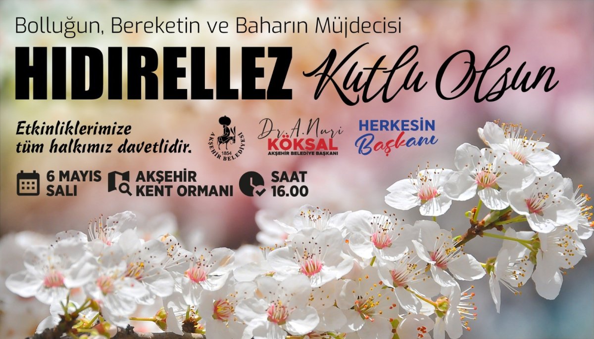 “Hıdırellez’in ruhunu yaşatmak, bu kadim kültürün içindeki umudu, güzelliği ve kardeşliği büyütmek hepimizin ortak sorumluluğudur. Bolluk, bereket ve yeni umutlar getiren Hıdırellez Bayramı’nın sevdiklerinizle birlikte sağlık, huzur ve mutluluk getirmesini temenni ediyor, 6 Mayıs Salı günü saat 16.00 da Akşehir Kent Ormanında gerçekleştirilecek olan Hıdırellez etkinliğimize tüm hemşehrilerimizi davet ediyorum.