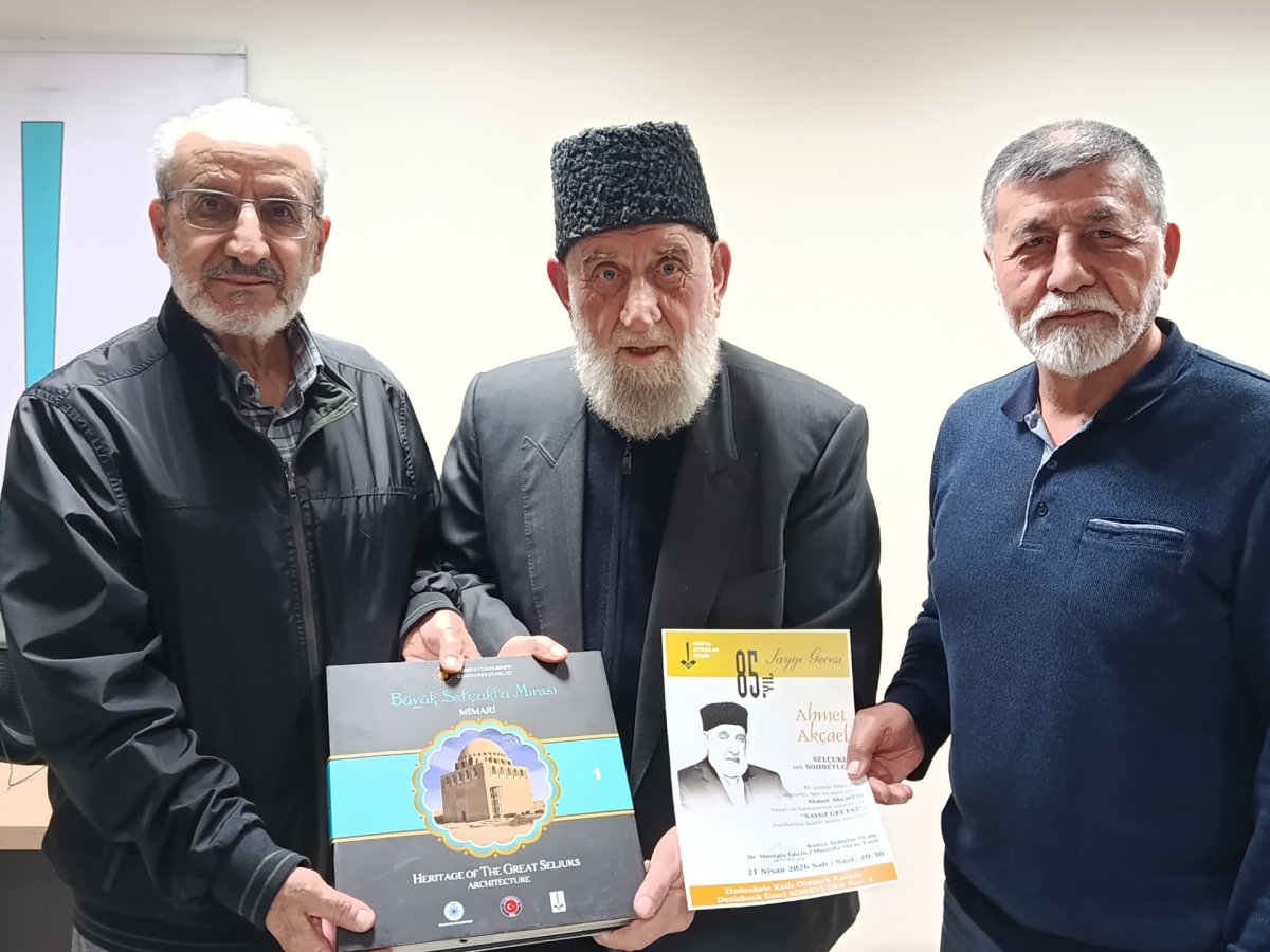 Program sonunda Aydınlar Ocağı Başkanı Dr. Mustafa Güçlü ve emekli müftü Mehmet Emin Parlaktürk günün hatırası olarak Ahmet Akçael’e kitap takdim etti.