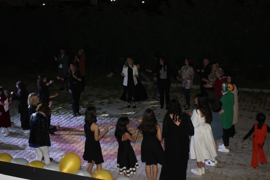 Okul bahçesinde yapılan mezuniyet törenine anasınıfı, ilkokul 4 ve ortaokul son sınıf öğrencileri, öğretmenler, idareciler ve veliler katıldı.