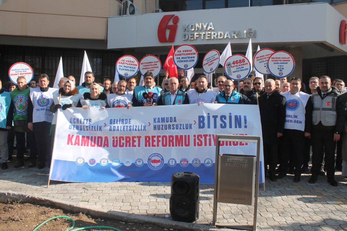 Memur-Sen Konya İl Temsilciliği, Konya’da Maliye binası önünde basın açıklamasında bulundu. Memur-Sen Konya İl Temsilcisi Nazif Karlıer, “Ücrette dengesizlik, gelirde adaletsizlik, kamuda huzursuzluk bitsin” dedi