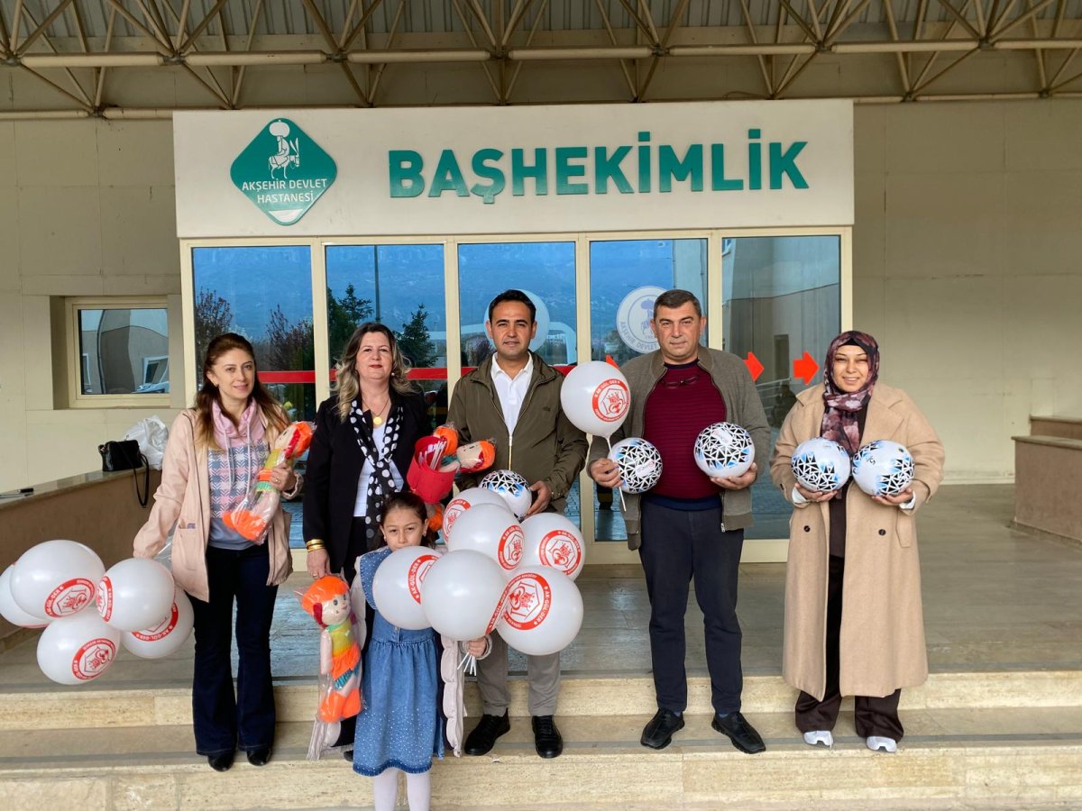 “Çocuklar Gülsün” mottosuyla hareket eden Gülümseyen Çocuklar Derneği, Akşehir Devlet Hastanesi çocuk servislerinde tedavi gören miniklere bayramın sevincini hissettirmek amacıyla ziyaret gerçekleştirdi. Renkli balonlar, Türk bayrakları ve özenle hazırlanan hediye paketleriyle gerçekleştirilen ziyarette çocuklara moral verildi. Etkinlikte, çocukların yüzlerinde oluşan tebessüm en anlamlı anlardan biri oldu.