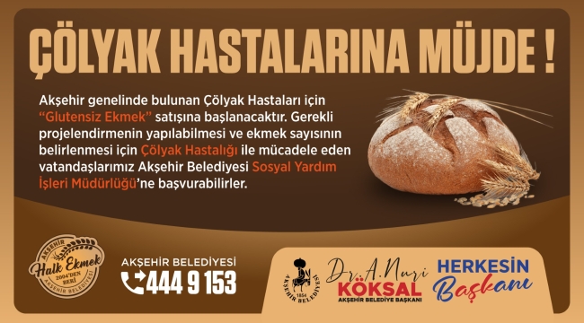 Belediye Başkanı Köksal; "İstanbul Halk Ekmek’te üretilen glutensiz ekmek ve ürünlerden Çölyak hastaları ve gluten hassasiyeti olan Akşehir'deki bireyler de faydalanabilecek. Akşehir genelinde yaptığımız araştırmalar sonucunda 60-70 arasında Çölyak hastası olduğunu tespit ettik, ancak bu rakamın daha fazla olabileceğini de düşünüyoruz. Hastaların ve ailelerinin belediyeye bizzat başvurarak kayıt olmalarını ya da belediyemizin 444 9 153 hizmet telefonunu arayarak irtibata geçmelerini istiyoruz. Bu iş birliğinden ve desteklerinden dolayı başta İBB Başkanı Ekrem İmamoğlu olmak üzere, İstanbul Halk Ekmek A.Ş. Yönetim Kurulu Başkanı Özgü Naima’ya teşekkürlerimi sunuyorum. Belediye Halk Ekmek Fabrikamız hijyenik hale getirilen bakım sonrasında yenilenen yüzü ile kapasite artışı ve engelli satış elemanlarıyla bu hafta yeniden hizmete başlayacak.” dedi.