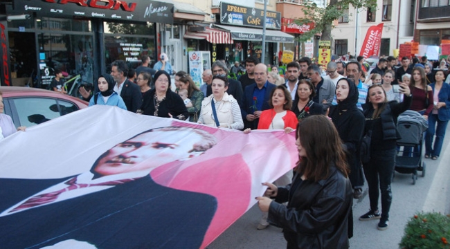 Nasreddin Hoca Meydanı’ndan başlayan yürüyüş, Cevdet Köksal Caddesi, 24 Ağustos Bulvarı üzerinden devam edip, Cumhuriyet Meydanı’nda sona erdi. Bir bölümünde Belediye Başkanı Dr. A. Nuri Köksal’ın da katıldığı yürüyüşte, kadın cinayetlerine ve kadına şiddet olaylarına tepki gösterilen sloganlar atılarak, pankartlar taşındı.