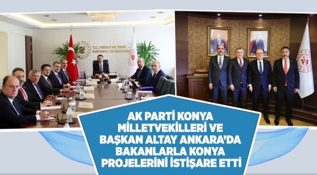 Toplantıların oldukça verimli geçtiğini kaydeden Başkan Altay, “Milletvekillerimizle birlikte bakanlarımızla şehrimizdeki yatırımları ve devam eden projeleri değerlendirdik. Yaptığımız görüşmeler Konya’nın geleceği için önemli kazanımlar sağlayacak. Şehrimize gösterdikleri ilgi ve kıymetli desteklerinden dolayı sayın bakanlarımıza teşekkür ediyorum. Konya’mızın daha çok kalkınması ve gelişmesi adına çalışmalarımızı kararlılıkla sürdüreceğiz” diye konuştu.