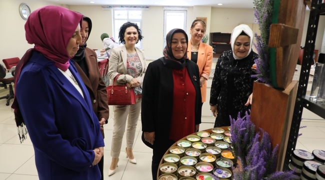 Kent Konseyi Kadın Meclisi Başkanı Fazilet Koçyiğit, Sedirler Sosyal Tesisi’nde sürdürülen atölye faaliyetleri hakkında protokol eşlerine bilgi verdi.