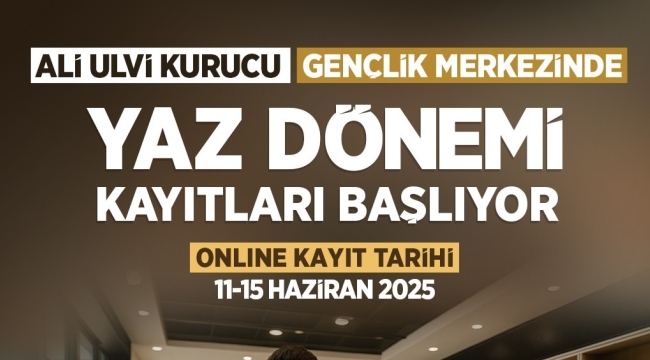 Ali Ulvi Kurucu Gençlik Merkezi Yaz Dönemi için ön kayıtlar, 11-15 Haziran 2025 tarihleri arasında genclikmerkezi.karatay.bel.tr adresinden alınacak, kesin kayıtlar ise 16-21 2025 Haziran tarihleri arasında Gençlik Merkezi’nde tamamlanacak.