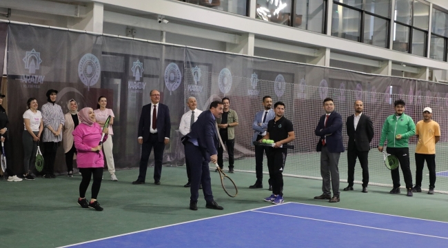 Ziyaret kapsamında korta çıkan Vali İbrahim Akın, Kaymakam Cengiz Ayhan ve Başkan Hasan Kılca, kısa süreli bir tenis maçı da yaptı.
