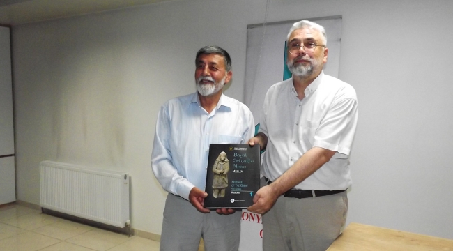 Program sonunda Aydınlar Ocağı Başkanı Dr. Mustafa Güçlü günün hatırası olarak Prof. Dr. Güngör Karauğuz’a kitap takdim etti.Haber:İbrahim Doğru