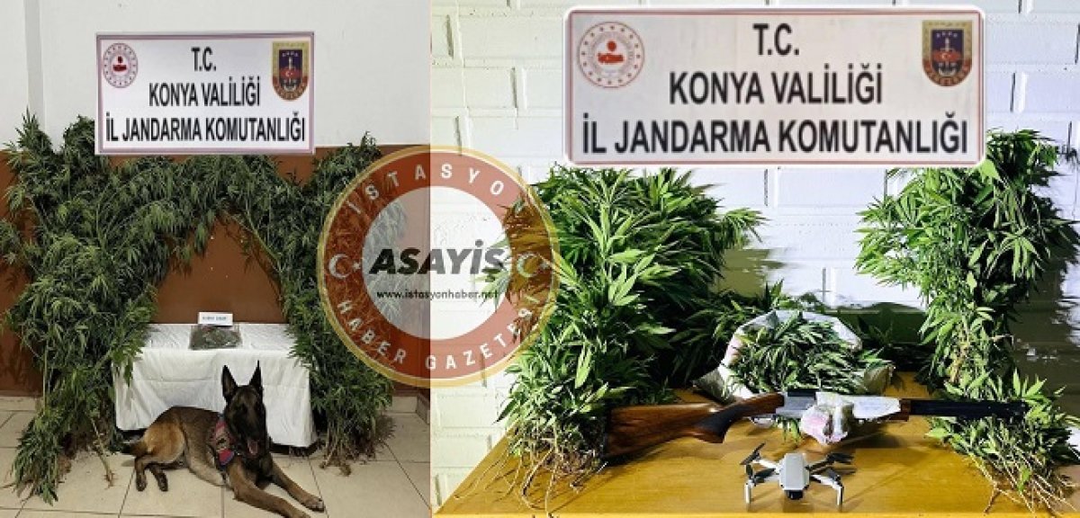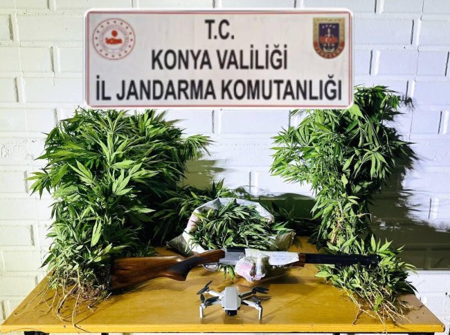 Konya İl Jandarma Komutanlığı ekipleri; Ereğli, Karatay, Çumra, Güneysınır, Kadınhanı ilçelerinde zehir tacirlerine yönelik operasyon düzenledi. Yapılan operasyonlarda, 161 kök kenevir bitkisi, 1 kök skunk bitkisi, 4 bin gram kubar esrar, bin 360 adet sentetik ecza, 3 gram kenevir tohumu, 1 adet ruhsatsız av tüfeği, 14 adet av tüfeği fişeği, 1 drone ele geçirildi.