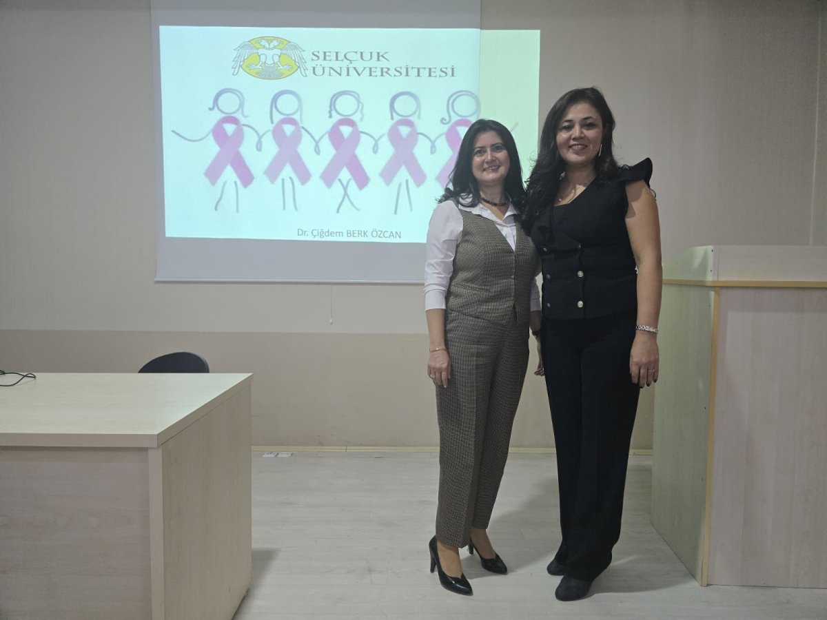 Kanser Farkındalık Haftası etkinlikleri kapsamında Selçuk Üniversitesi Akşehir Meslek Yüksekokulu öğrencilerine yönelik “Sağlığınız için Farkındalık Zamanı-Kadınlara Özgü Kanser Türleri” konulu panel düzenlendi.