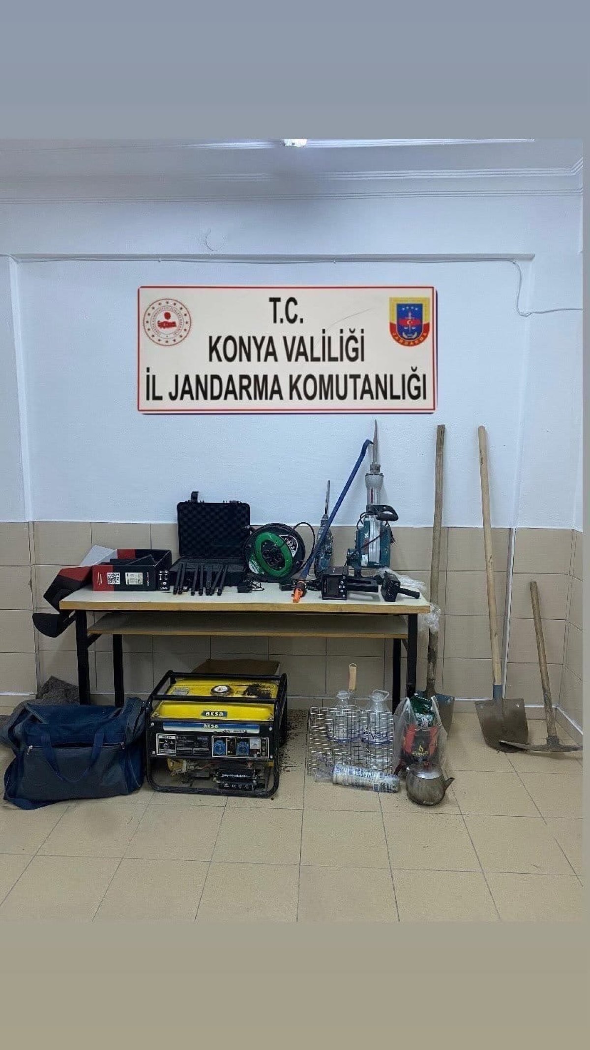 Operasyon kapsamında kazı alanında bulunan, 3 adet özel tarama cihazı, 2 adet kürek, 1 adet kazma, 1 adet büyük hilti, 1 adet jeneratör, 1 adet küçük hilti ve 50 metre seyyar kabloya el konuldu.