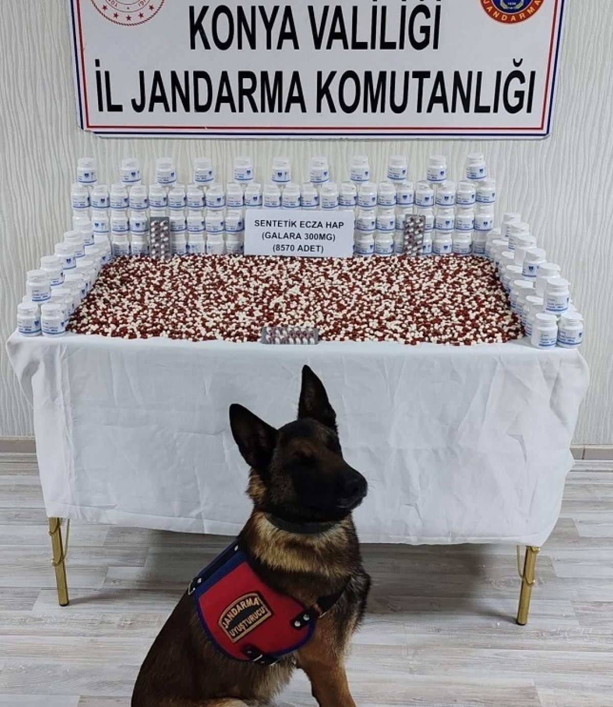 Ereğli ilçesinde ise İlçe Jandarma Komutanlığı ve KOM Şube Müdürlüğü ekipleri tarafından yürütülen çalışmalarda, 3 şahsın uyuşturucu madde temin ederek satacakları bilgisine ulaşıldı. Yapılan fiziki takibin ardından şüphelilerin ikametlerinde narkotik köpekleriyle gerçekleştirilen aramalarda 8.570 adet 300 mg Galara sentetik ecza hap ele geçirildi.