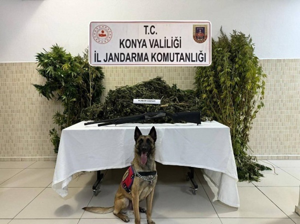 Sarayönü ilçesinde Ş.Y ve S.Y isimli kişilerin ev ve tarlasında yapılan arama sonucunda 8 bin 600 gram kubar esrar maddesi, 36 kök kenevir bitkisi ve 1 adet ruhsatsız av tüfeği ele geçirildi.