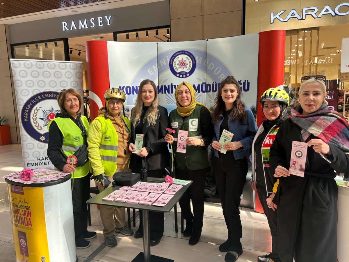Konya İl Emniyet Müdürlüğü, 8 Mart Dünya Kadınlar Günü’nde kadınların güvenliği için sahadaydı. Karatay, Selçuklu ve Meram Aile İçi Şiddetle Mücadele Büro Amirlikleri, şehrin kalabalık noktalarında kurdukları stantlarla kadınlara yalnız olmadıklarını hissettirdi.