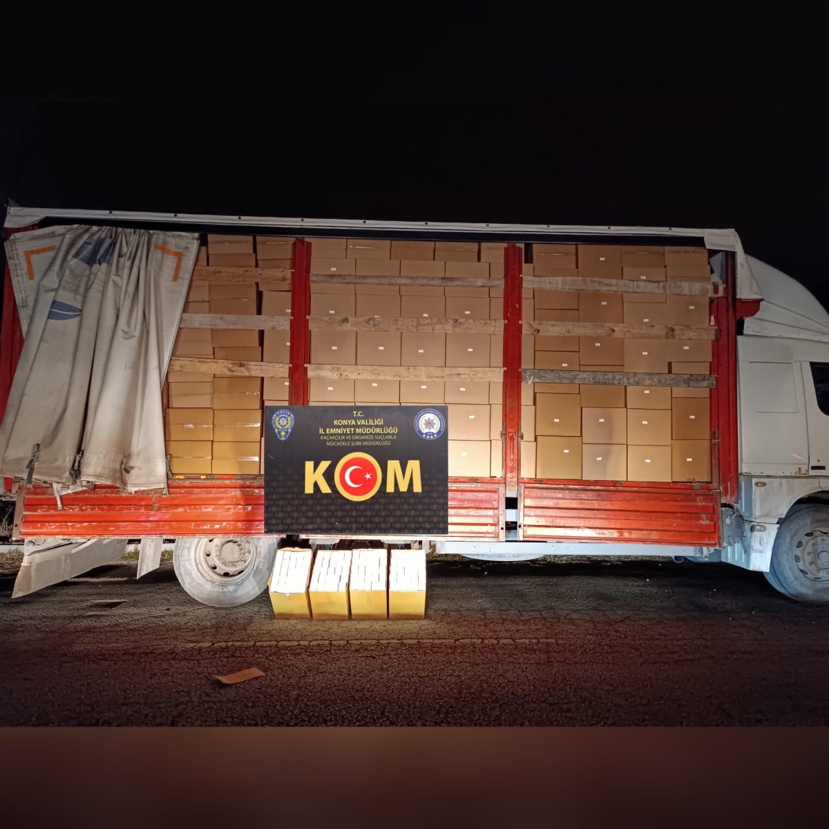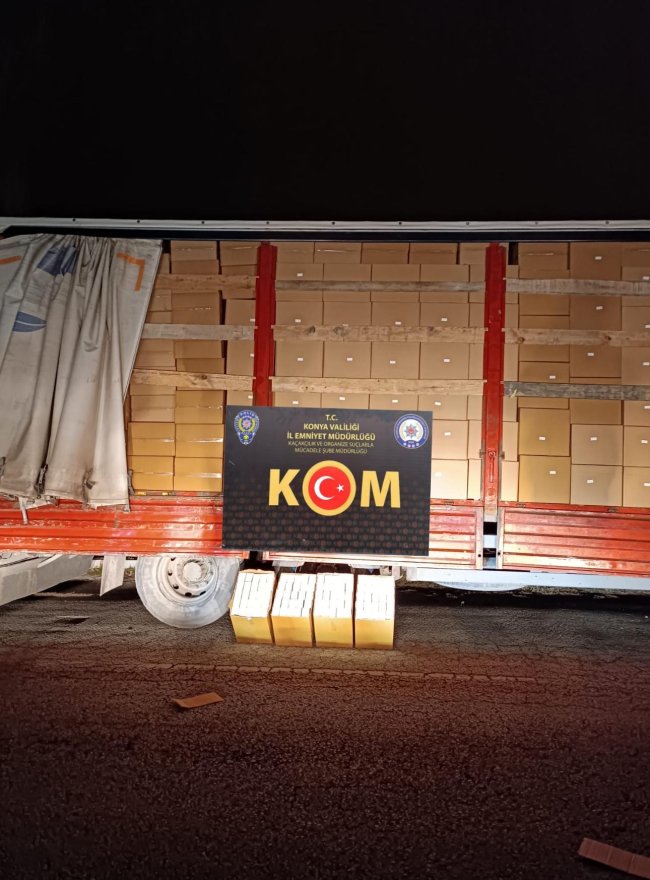 Konya Emniyet Müdürlüğü’ne bağlı Kaçakçılık ve Organize Suçlarla Mücadele Şube Müdürlüğü ekipleri yaptığı çalışmalar sonucu Karatay ilçesinde bir kamyonu durdurdu. Durdurulan kamyonda milyonlarca makaron ele geçirildi.