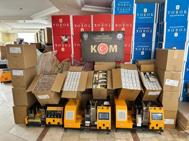 Konya Emniyet Müdürlüğü Kaçakçılık ve Organize Suçlarla Mücadele (KOM) Şube Müdürlüğü ekipleri, kaçakçılıkla mücadele kapsamında yürüttükleri çalışmalar sonucunda önemli bir operasyona imza attı. Selçuklu ilçesinde bir lisenin karşısında bulunan müstakil evin kaçak sigara üretimhanesi olarak kullanıldığı bilgisine ulaştı.