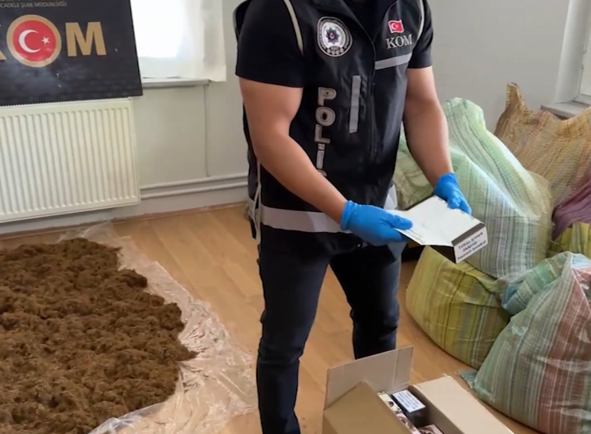 Yapılan çalışmaların ardından eve operasyon düzenleyen polis ekipleri, içeride kaçak sigara üretiminde kullanılan düzenekler ve yüklü miktarda tütün ürünü ele geçirdi. Evde yapılan aramada piyasa değeri yaklaşık 1 milyon TL olan 220 bin adet boş makaron, 30 bin adet doldurulmuş makaron, 1.000 paket sigara, 145 kilogram kıyılmış tütün ile 3 sigara basım makinesi ve 1 kompresör bulundu.