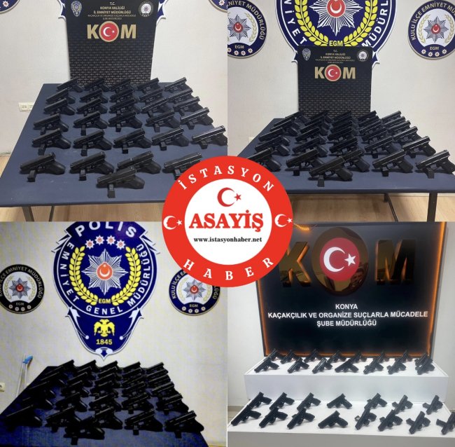 Konya İl Emniyet Müdürlüğü Kaçakçılık ve Organize Suçlarla Mücadele Şube Müdürlüğü ekipleri, tarafından yasa dışı silah üretimi ve ticareti yapan şahıslara yönelik operasyonda, 32 adet ruhsatsız tabanca ve şarjörü, 55 adet tabanca fişeği, 201 adet tabanca parçası ele geçirildi.