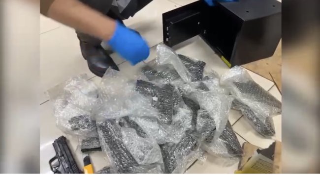 Bu kapsamda ekipler, kentteki bir kargo firmasına teslim edilen 4 kolide şüphe üzerine arama yaptı. Aramada, kolilerin içerisindeki çelik kasalara zulalanmış 100 ruhsatsız tabanca ve şarjör bulundu.