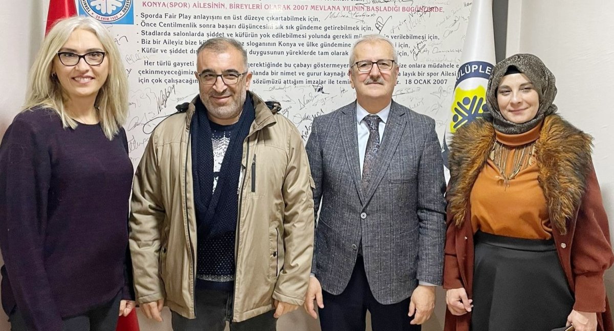 Osman Gazi Ortaokulu Müdürü Arzu Yücel beraberinde okul öğretmenlerinden Şahin Işık ve Selda Yazıcı Çelebi ile birlikte Konya Amatör Spor Kulüpleri Federasyonu Başkanı Remzi Ay'ı ziyaret etti.