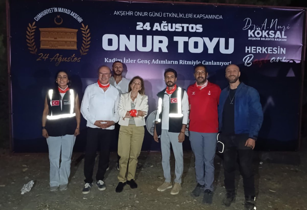 Başkan köksal; Sevgili Akşehirliler bu akşam 24 Ağustos onur toyu adı altında başlattığımız etkinliğe ekrem çavdar yamaç paraşütü alanına kadar bu saatte çıkan sevgili tam da yarının ruhuna uygun çok özel bir konukla yanımda garp cephesi karargahının komutanı Kemal atatürk’ün en yakın silah arkadaşı ikinci Cumhurbaşkanımız türkiye’ye çok partili demokratik hayatı armağan eden akşehir’in manevi evladı ismet inönü’nün torunu gülsün Toker Bilgehan la birlikteyiz. 9 ay 10 gün süren Akşehir büyük taarruzluğa ana kucakları yaptığı o kutlu günler 103 yıl önce yarın sona erdi yarın 1.922 24 ağustosunda ordular baş komutanları Mustafa Kemal paşa’nın önderliğinde büyük taarruz için afyon’a hareket ettiler ve 26başlayan büyük taarruz 30 ağustos’ta zaferle sonuçlandı ve Türkiye cumhuriyeti’ne giden bu yola Akşehir baş koydu Akşehir ana kucaklığı yaptı onun için diyoruz ki cumhuriyet’in mayası akşehir’de çalınmıştır Cumhuriyet ve milli mücadele bu toprakların her köşesi için çok önemlidir ama Akşehir için ayrı bir önemlidir işte 40 küsur yıldır yaşatsa geldiğimiz bu onur günü etkinliklerinde yarın yine temsilen Mustafa Kemal paşamız diğer paşalar ordumuzu temsilen erlerimiz yürüyüş yapacaklar o günün hatıralarını alanında uzman konuklarımız bizi anlatacaklar sergiler açacağız ve bu akşam istedik ki 103 yıl önce bu topraklardan kurtuluşa giden yolu o büyük insanlar nasıl kat etmişse onun ruhaniyeti sini bizler de yaşayalım imanımızı inancımızı yani Türkiye cumhuriyeti’nin ilelebet payidar olacağına dair inancımızı bir kere daha tazeleyelim