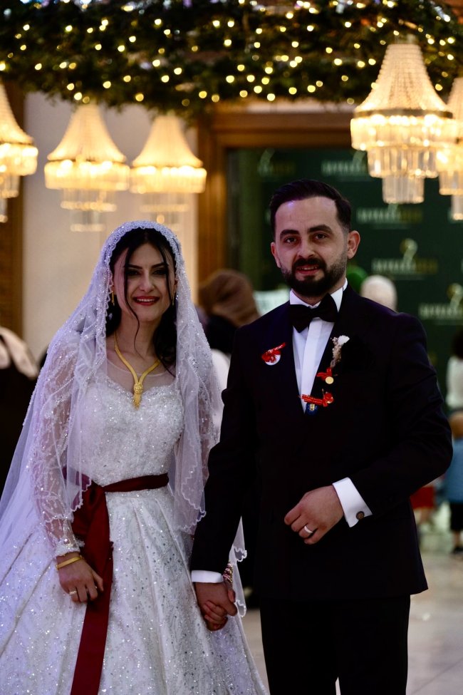 Düğün törenine kalabalık bir davetli topluluğu katılırken genç çiftin aileleri davetlileri kapıda karşılayarak yakından ilgilendi. Misafirlere geleneksel Konya düğün yemeği ikram edilirken çiçeği burnunda genç çift ise kendilerini bu mutlu günlerinde yalnız bırakmayan davetlilerin masalarını tek tek gezerek hoş geldiniz’ dedi.