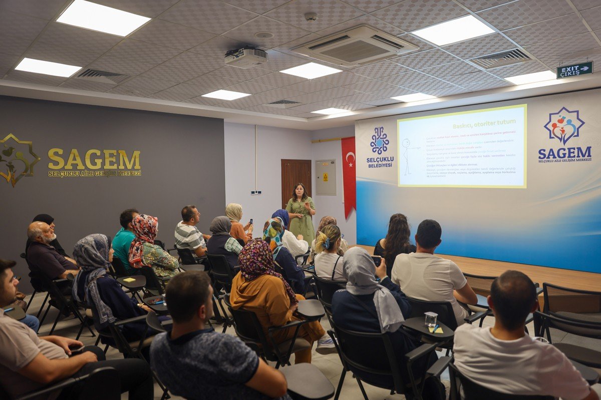 Selçuklu Belediyesi’nin toplumun temel taşı olan aile kurumunun yapısını güçlendirmeyi hedefleyerek hizmete kazandırdığı ve Türkiye’de ilk özelliği taşıyan Selçuklu Aile Gelişim Merkezi (SAGEM), sürdürdüğü faaliyetlerle mutlu aile ve huzurlu bir toplumun oluşmasına katkı sağlamaya devam ediyor. Merkez, ücretsiz olarak verilen terapi ve danışmanlık hizmetleri ve aile içi ilişkilerin güçlendirilmesine yönelik eğitim programlarıyla örnek çalışmalara imza atıyor. Bu kapsamda çok sayıda vatandaşın faydalandığı SAGEM’de 2025 Aile Yılı ile hız kazanan ailelerin gelişimini desteklemeye yönelik çalışmalara bir yenisi daha eklendi. Çocuklar ve ailelerin daha sağlıklı, güvene dayalı ve destekleyici ilişkiler kurmalarını sağlamak amacıyla ailelere yönelik “Olumlu Ebevenlik Becerileri” konulu seminer düzenlendi.