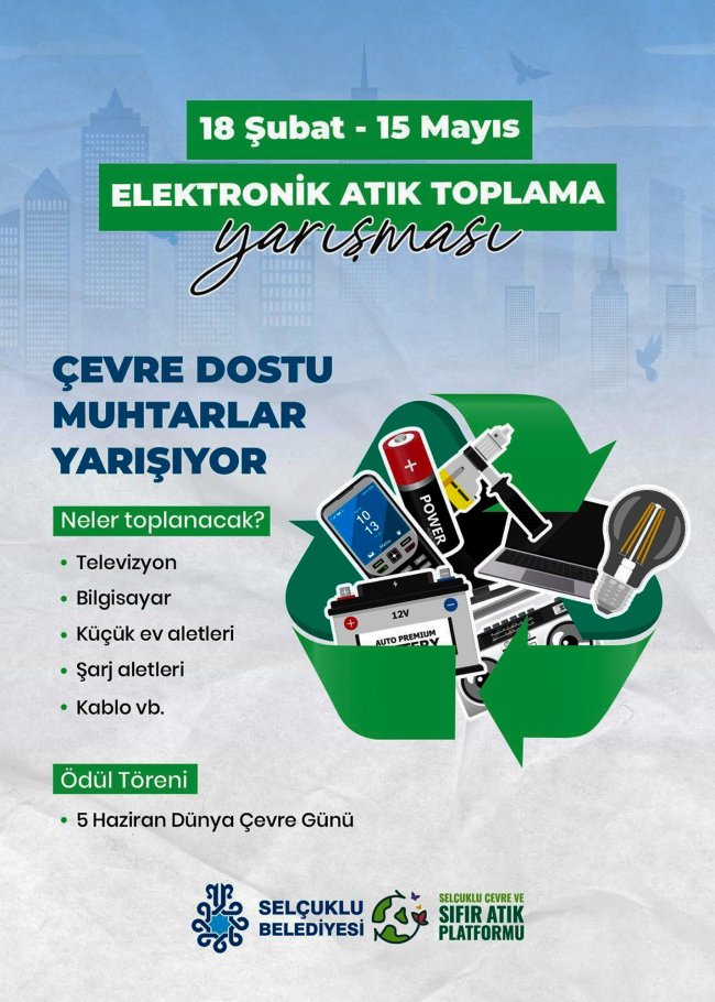 Çevre dostu projelere ve eğitim çalışmalarını sürdürdüklerini belirten, Selçuklu Belediye Başkanı Ahmet Pekyatırmacı, “Daha temiz ve yaşanılabilir bir çevre için vatandaşlarımızın bu alanda bilgilendirilmesi ve yapacakları katkılar büyük önem taşıyor. Sıfır Atık sadece bir çevre projesi değil, gelecek nesillere karşı sorumluluğumuzun bir gereğidir. Mahallelerimizde bu bilincin yaygınlaşması noktasında muhtarlarımız büyük rol oynuyor. Onların desteğini çok önemsiyoruz. Bizler de üzerimize düşen görevi yerine getiriyoruz. Bu alanda eğitim programlarımız ve yarışmalarımızla farkındalığı artırıyor ve de vatandaşlarımızı bu sürece katılmalarını teşvik ediyoruz. Düzenlediğimiz bu yarışma ile hem elektronik atıkların doğaya zarar vermesini önlemeyi hem de mahallelerimize sıfır atık bilincini yaymayı hedefliyoruz. Tüm mahalle sakinlerini evlerindeki atıl durumdaki elektronik eşyaları muhtarlıklarına getirerek bu iyilik hareketine destek olmaya davet ediyorum” ifadelerini kullandı.
