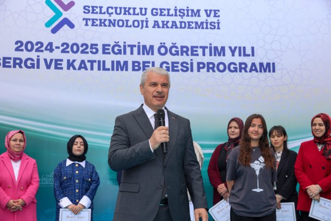 Selçuklu Belediyesi tarafından hayata geçirilen okul dışı öğrenme ortamlarının önemli markalarından biri olan Selçuklu Gelişim ve Teknoloji Akademisi’nde 2024- 2025 öğretim yılı sergi ve katılım belgesi töreni ile sona erdi. Protokol üyeleri sergi sonrasında Sille Tabiat Okulu’nu da ziyaret ederek doğa ile iç içe eğitim alan öğrencilerin faaliyetlerine de eşlik etti. Selçuklu Belediye Başkanı Ahmet Pekyatırmacı, “Okul dışı öğrenme ortamlarımız Türkiye Yüzyılı Maarif Eğitim Modeli kapsamında çok önemli bir işlevi yerine getiriyor” dedi.