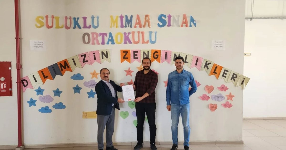 İlçe Milli Eğitim Müdürü Mahmut İşcan ve beraberindeki heyet; bu kapsamda; Böğrüdelik İlkokulu, Saray İlkokulu ve Ortaokulu, Çayırbaşı İlkokulu ve Sülüklü Mimar Sinan Ortaokulunu ziyaret ederek, hem belgeleri teslim ettiler, hem de öğrenci ve öğretmenlerle bir araya geldiler.İlçe Milli Eğitim Müdürü İşcan, ilçedeki tüm okulların bu belgeyi almış olmalarından duyduğu memnuniyeti dile getirerek, tüm okul yönetici ve öğretmenlere teşekkür etti.Haber:Süleyman Bademci